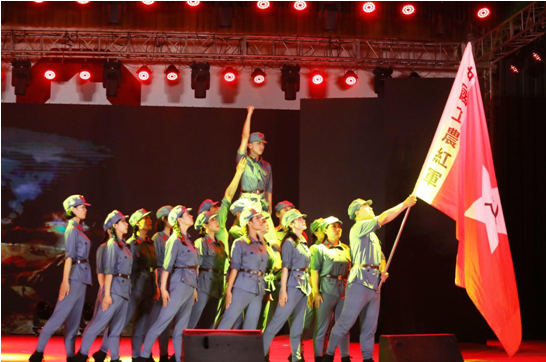 文藝演出結(jié)束,全場(chǎng)起立,共同高唱《沒(méi)有共產(chǎn)黨就沒(méi)有新中國(guó)》,熱烈掌聲經(jīng)久不息。
