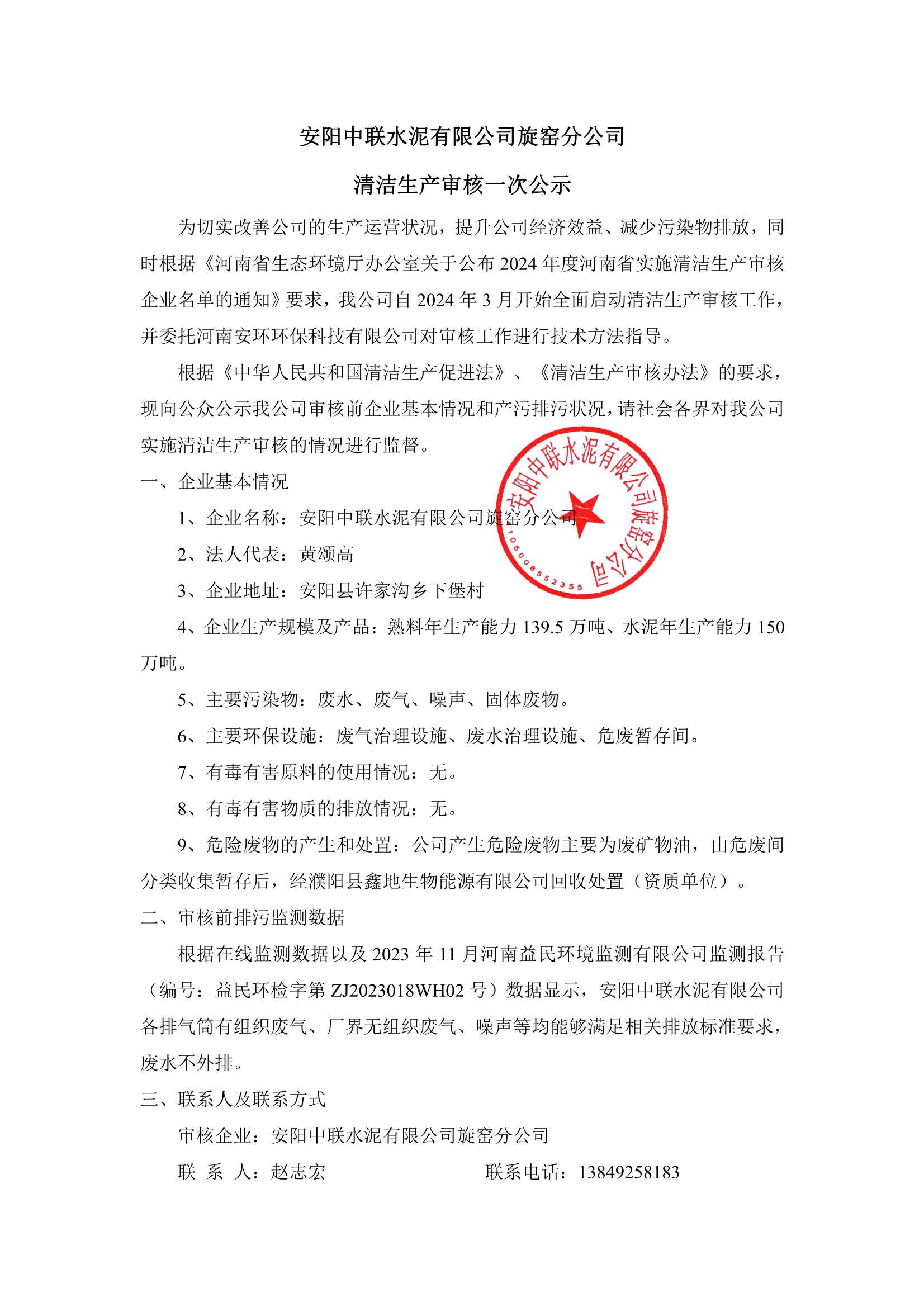 安陽中聯(lián)水泥有限公司旋窯分公司突發(fā)環(huán)境事件應(yīng)急預案公示